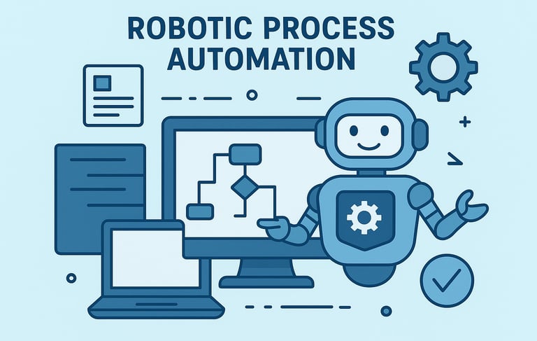 RPA automates repetitive, rule-based tasks such as data entry, invoice processing, or form submissions. When combined with AI, it becomes intelligent automation, capable of handling complex workflows.